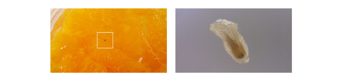 ゼリーの中に見られるみかんの未成熟な種