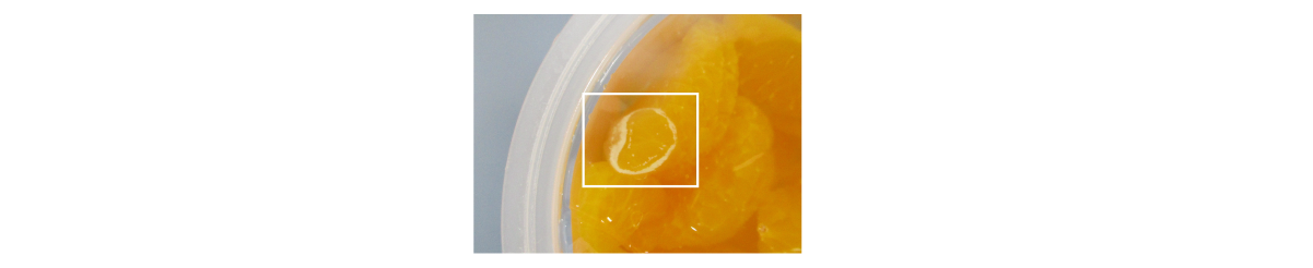 加工段階でみかんの皮を取り除いておりますが、稀に果実に残っていたり、果実から離れた皮がゼリー中に入っている場合がございます。 みかんの成分ですので、ご心配には及びません。